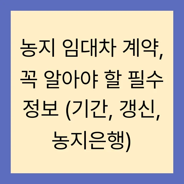 농지 임대차 계약, 꼭 알아야 할 필수 정보 (기간, 갱신, 농지은행)