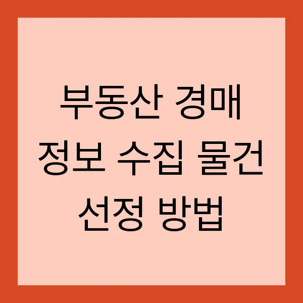 부동산 경매 정보 수집 물건 선정 방법