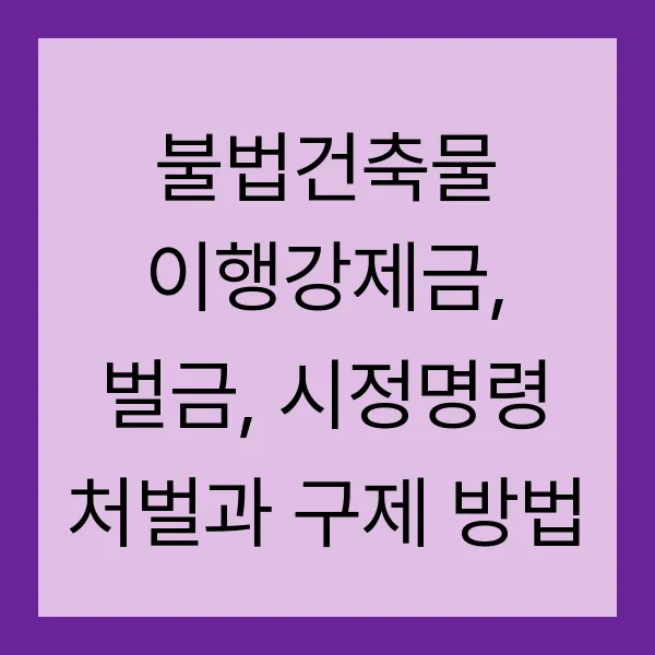 불법건축물에 대한 처벌은 시정명령, 이행강제금, 벌금 등 다양한 형태로 이루어집니다. 위반의 경중에 따라 처벌 수위가 달라지며, 심한 경우 형사 처벌까지 받을 수 있습니다.😨