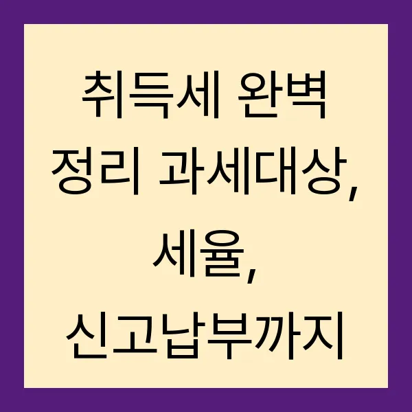 부동산, 자동차 등 자산 취득 시 반드시 알아야 할 취득세! 취득세율, 과세표준, 신고납부, 감면 혜택까지 핵심 정보만 모아 완벽하게 정리했습니다. 취득세 폭탄💣 맞지 않으려면 지금 바로 확인하세요! 전문가 수준의 지식으로 무장하여 스마트한 자산 관리 시작하세요!